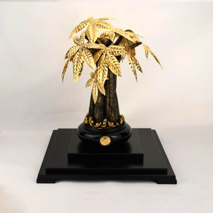 Thân và tán cây được chế tác thủ công bằng hợp kim cao cấp, mạ vàng 24K nguyên chất , bền đẹp, không phai màu.