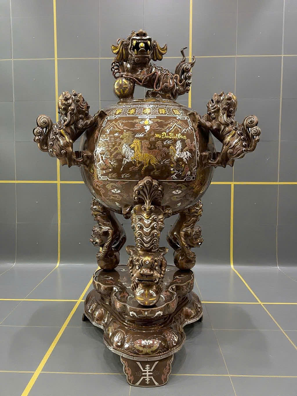 Đỉnh cầu thất lân khảm ngũ sắc kỹ cao 1m35cm đúc đồng đỏ