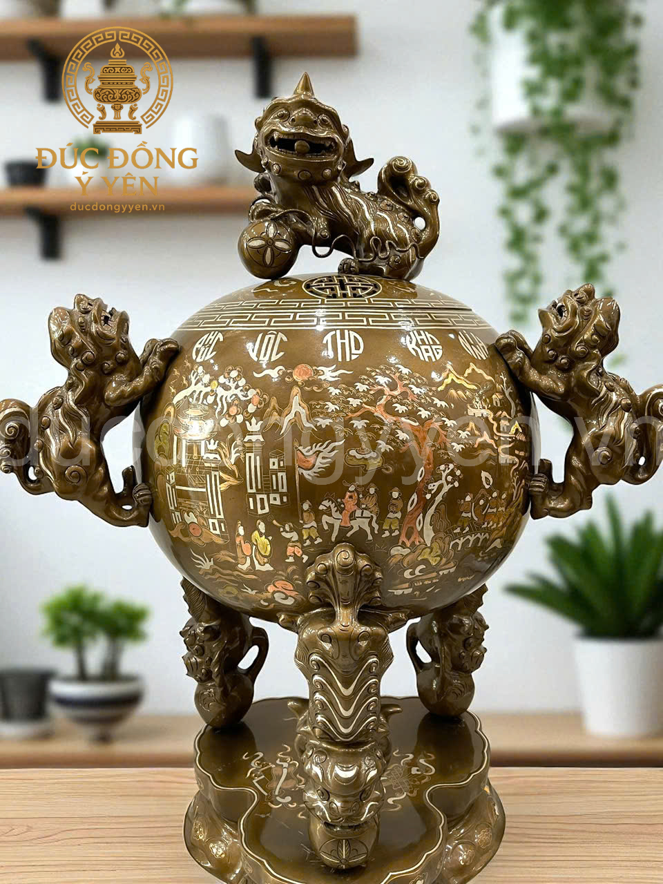 Sản phẩm được chế tác bởi những nghệ nhân làng nghề đúc đồng truyền thống Ý Yên – Nam Định , nổi tiếng cả nước với kỹ thuật đúc – khảm tinh xảo. Đây không chỉ là một đồ thờ linh thiêng mà còn là tác phẩm nghệ thuật giá trị cao .