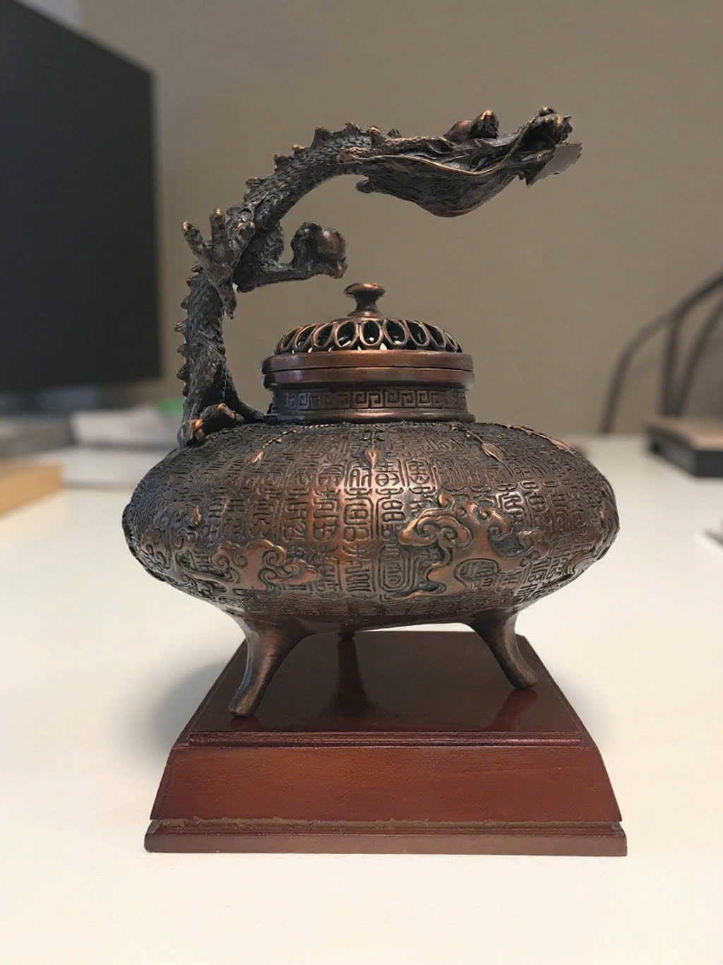Tên sản phẩm: Lư xông trầm nắp Rồng bằng đồng
