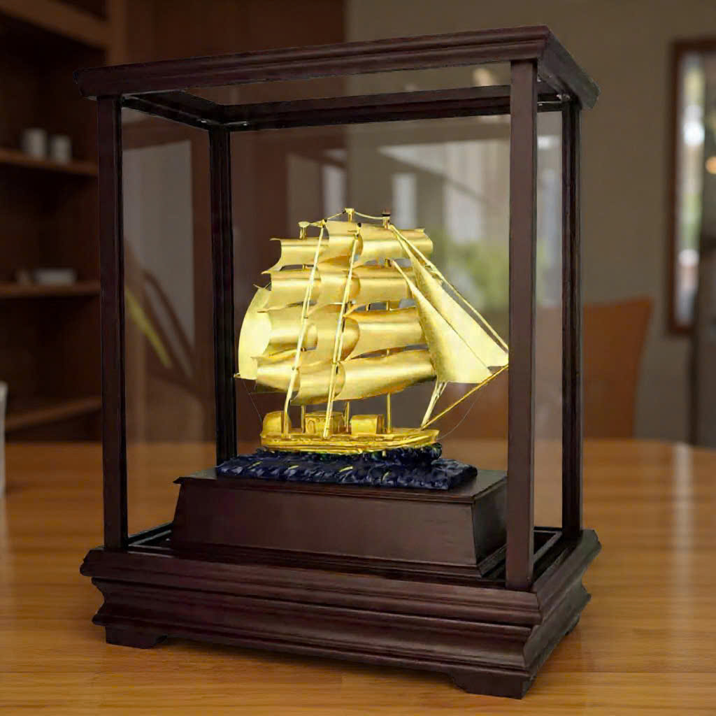 Thuyền buồm mạ vàng 24K cưỡi sóng KT 36X29X17CM