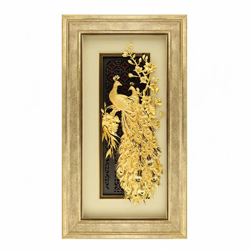 Tranh chim công phú quý vạn niên mạ vàng 24k