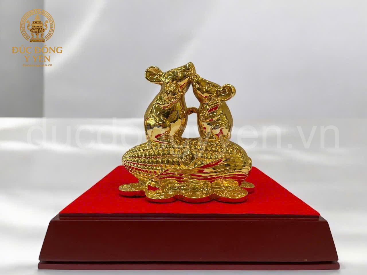 Tên sản phẩm: Tượng Đôi Chuột Đứng Bắp Ngô Mạ Vàng