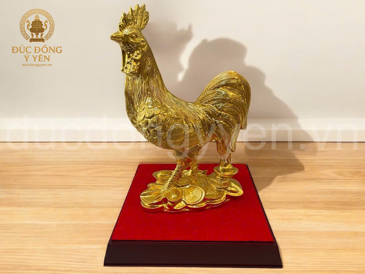 Tên sản phẩm: Tượng Gà Trống Bằng Đồng Thiếp Vàng 9999