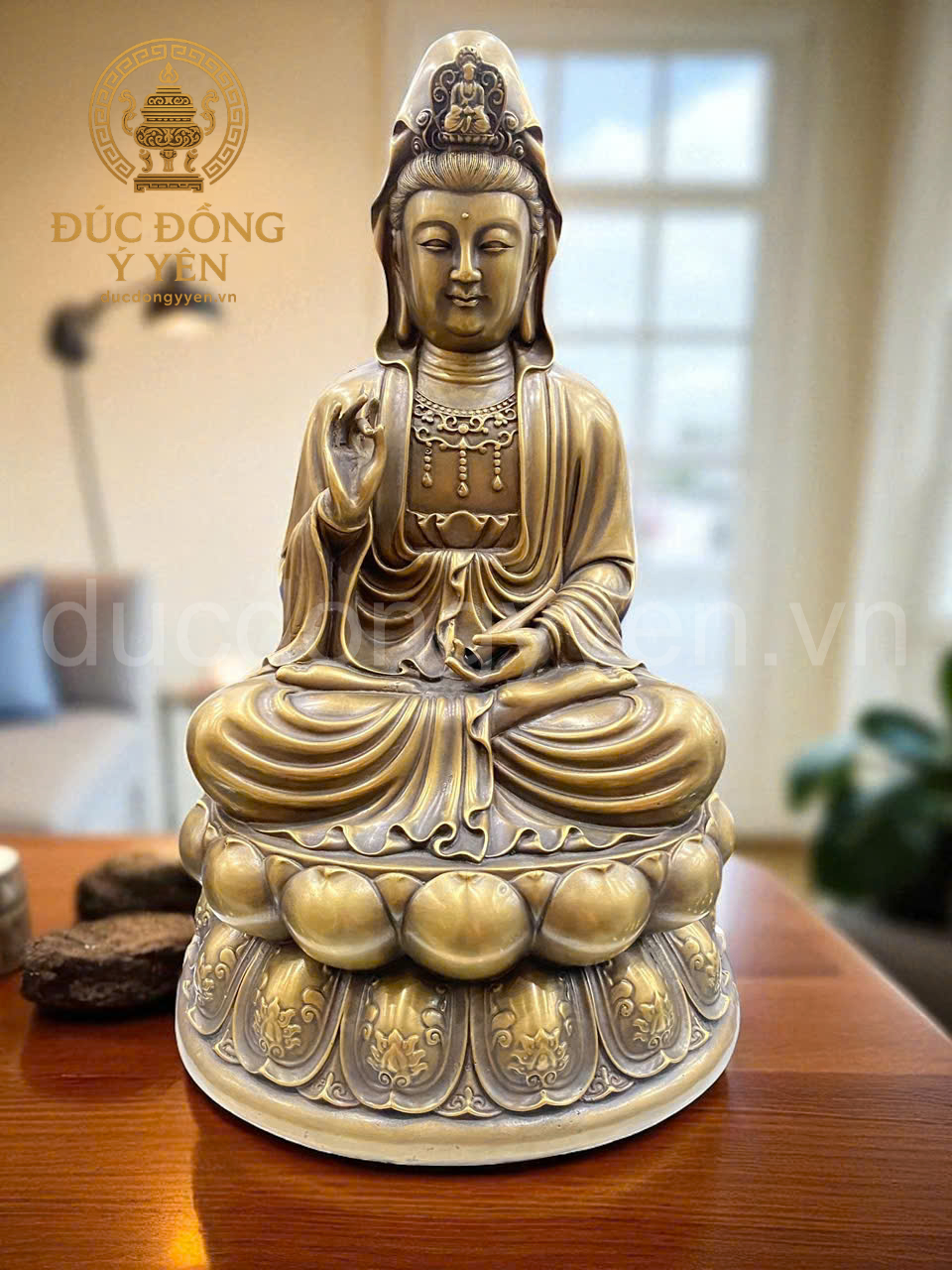 Truy cập DUCDONGYYEN.VN để đặt mua và nhận tư vấn chi tiết về sản phẩm Tượng Phật Quan Âm bằng đồng vàng hun màu giả cổ .